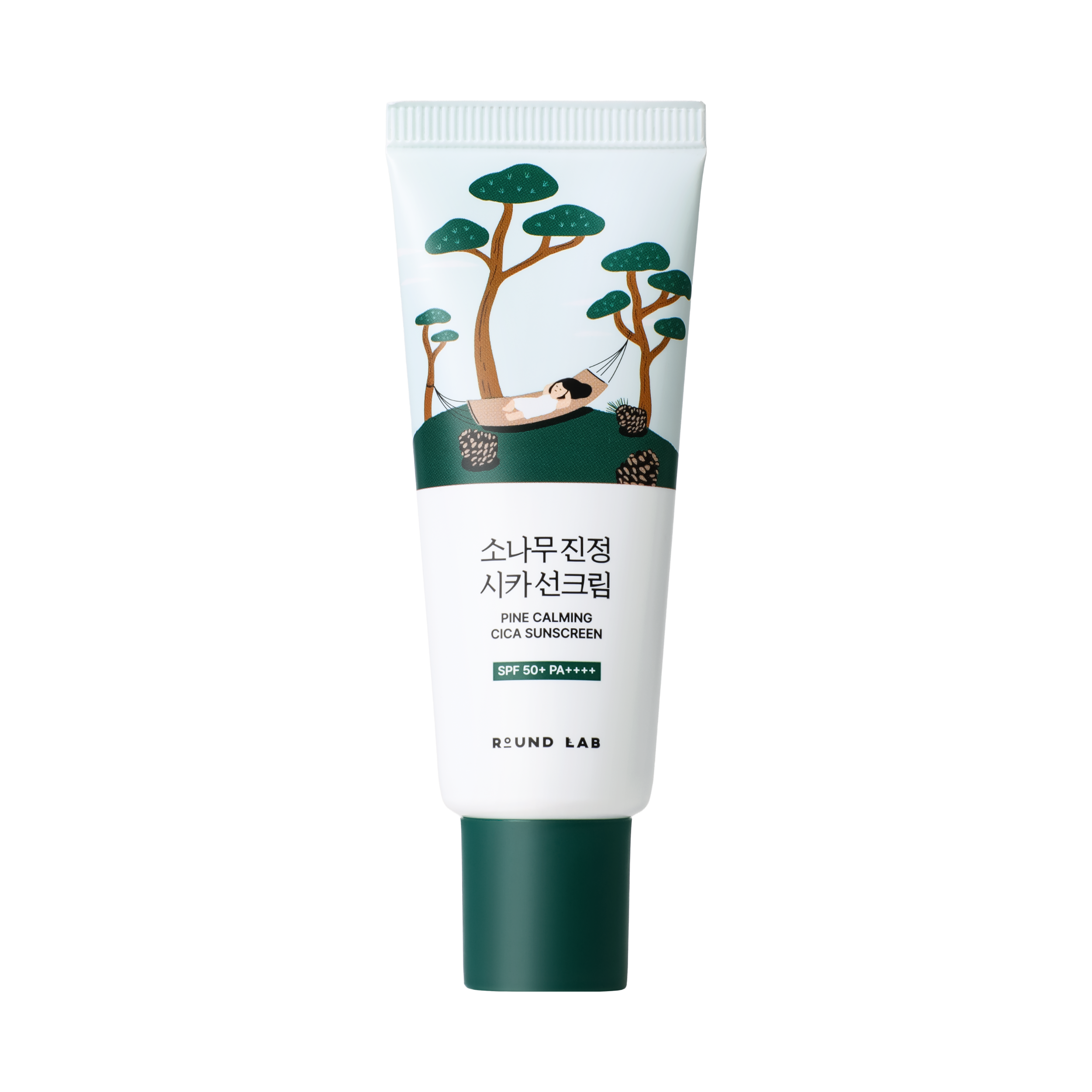 ROUND LAB Pine Calming Cica Sunscreen — сонцезахисний крем на хімічних фільтрах, що не тільки надає захист від сонця широкого спектра SPF50+ PA++++, а й допомагає додатково заспокоїти шкіру й контролювати виділення себуму.