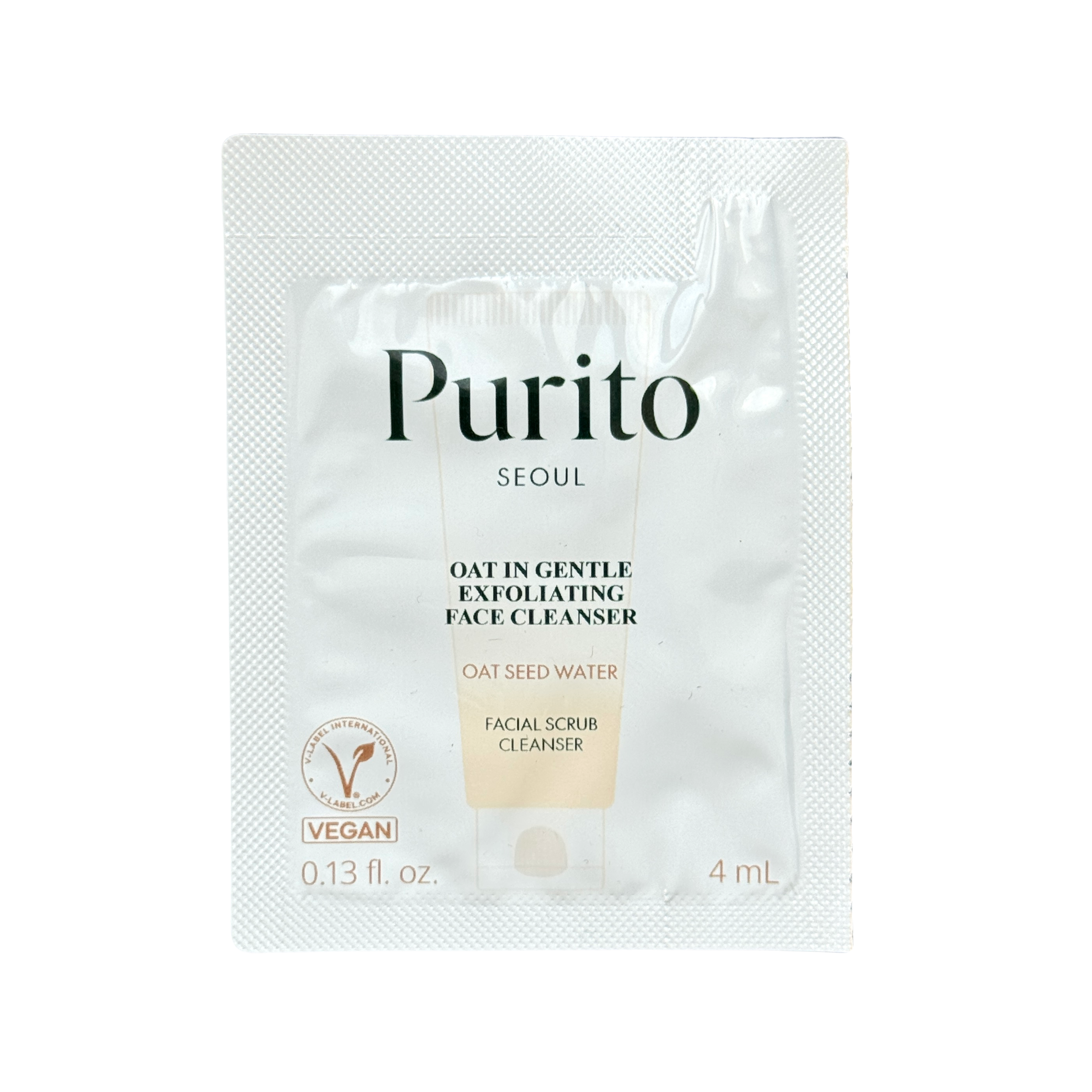 Purito Seoul Oat In Gentle Exfoliating Face Cleanser — ніжка маска-пінка з каоліном, водою насіння вівса та часточками вівса, призначена для делікатного очищення та ексфоліації шкіри. Можна використовувати як маску, так і як пінку для умивання.