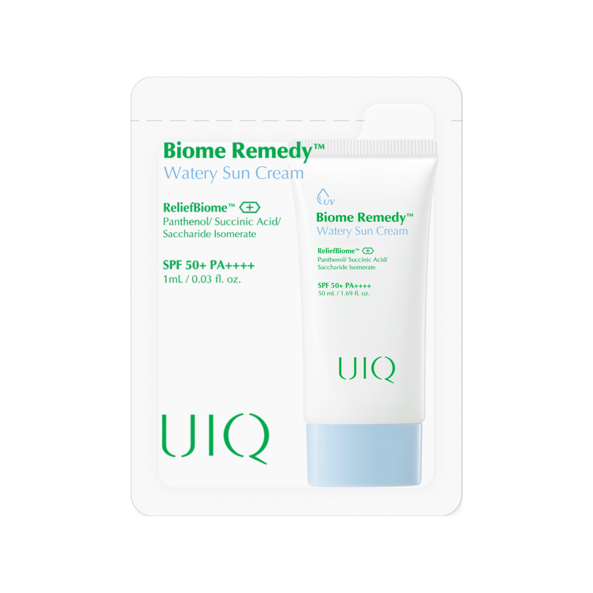 UIQ Biome Remedy™ Watery Sun Cream — сонцезахисний крем на хімічних фільтрах, що забезпечує захист широкого спектра SPF 50+ PA++++. Містить 84% зволожувальної есенції.